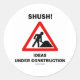 No need to be writing a senior thesis or a dissertation to enjoy this signage humour sticker that including the following wry saying: "Shush! Ideas Under Construction". Includes transportation warning sign showing person digging the ground. Memorable sound advice sticker for anyone who works with ideas and needs some peace and quiet!
