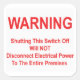 Shutting Switch Off Will NOT Disconnect Power Square Sticker