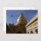 Birds flying free over the amazing golden stupa of the Shwezigon Pagoda in Bagan, Myanmar (Burma)