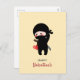 Shy Blushing Ninja Holding Origami Paper Heart Holiday Postcard