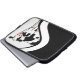 Funny Dairy Cow in black and white peeks out from behind a swirl border. Cute animals sleeve for your electronics laptop from iPhone uPhone.