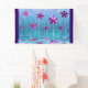 A digital drawing of cute stylised purple flowers with shining red centres. They're peering quizzically at you from the tall grass beside a pool of clear rippling water.