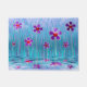 A digital drawing of cute stylised purple flowers with shining red centres. They're peering quizzically at you from the tall grass beside a pool of clear rippling water.
