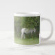 This awesome mug features a beautiful photograph of a gorgeous white horse standing under a tree looking a bit shy.