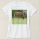 This cute kids t shirt features a beautiful photograph of a gorgeous chestnut brown coloured horse with a shaggy mane and white feet. The horse is grazing on some short green grass in a field. The design is shown here on a ladies white baby doll style tee but is available on a range of styles and colours of clothing for kids, babies, women and men.