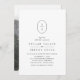 The simple black and white design features a geometric oval monogram with the initials of the couple and an elegant yet boho feel.