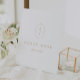 The simple gold typography design features a geometric oval monogram with the initials of the couple and an modern minimalist feel.