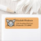 Cute graphic artwork depicting the face of a Siamese cat in buff colours, light centre on dark, with pale blue eyes decorates this custom address label.