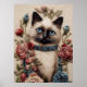 Siamese Cat and Roses 3D Embroidery Art Poster