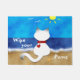 A fun cat lovers door mat featuring a cute Siamese cat sitting on a sandy beach and ocean waves enjoying the sunshine with the words "Wipe your Paws!" Customise this fun Siamese cat doormat for your favourite cat lover!