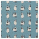 Use this Siamese cat fabric for fashion or decor projects. The design features a repeat pattern with Siamese cats in two poses against a soft blue background.