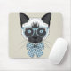 This design features a Siamese cat dressed in a blue pair of glasses and chequered bow tie.