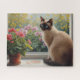 Siamese Cat in the Window with Garden View Jigsaw Puzzle