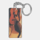 This rectangular keychain is designed with a photo of a Seal Point Siamese Cat playing a guitar.