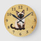 Siamese Cat On Old Paper Round Clock