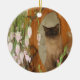 Pretty Siamese cat posing on a shelf with dried flowers at a farm stand ornament. Click on Customise to add your personal message on the back. If you would like the image on the back of the ornament as well, please contact me and I will be happy to create it for you. If you need help or have any requests, please contact me through Send Message on my homepage. This image is available on many products in my gallery.