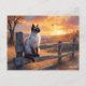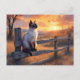 Siamese cat on split rail fence postcard