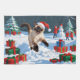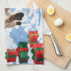 Siamese Cat Running in Snow with Christmas Hat Tea Towel