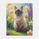 Siamese Cat Spring Flowers Painting Fleece Blanket