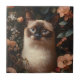 Siamese Cat Surrounded By Blush Pink Flowers Tile