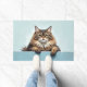 The soft frosty blue background complements its dense coat and adds a cool, refreshing touch—perfect for welcoming entryways. Designed with extra space at the top and bottom, it allows easy personalisation with names, welcome messages, or custom text—making it ideal for unique cat-themed doormats and thoughtful gifts.
