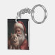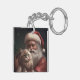 Siberian Cat With Santa Claus Festive Christmas Key Ring