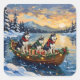 Siberian Husky Christmas Boat Holiday Square Sticker
