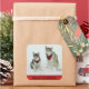 Two beautiful Siberian Huskies in the snow dressed in their Santa scarves ready to celebrate Christmas.
