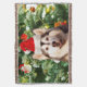 Cute Siberian Husky with Christmas Tree Ornaments Snow Man in background Photo Throw Blanket
