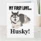 Siberian Husky Dog Cute Siberian Husky Card designed by Nisha Prabhu. Send a paw-sitively adorable greeting with this cute Siberian Husky dog card! Perfect for any occasion, this card features a charming illustration of a playful Husky that is sure to bring a smile to anyone's face. Make someone's day with this sweet and heartfelt card that captures the spirit of these loveable pups. Don't wait, get your paws on this cute design today!