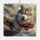 Siberian Husky Dog Christmas Festive Ceramic Ornament