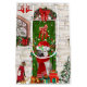 Siberian Husky Dog Christmas sitting outside decorated home with Christmas wreath, Christmas tree is a perfect Christmas gift idea for dog lovers.