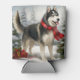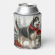 Siberian Husky Dog in Snow Christmas Can Cooler