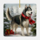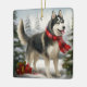 Siberian Husky Dog in Snow Christmas Ceramic Ornament
