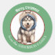 Siberian Husky Dog Pup in Winter Hoodie Christmas Classic Round Sticker