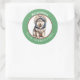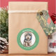 An image of an adorable little Siberian Husky Dog puppy wearing his winter hoodie is at the centre of this cute Holiday sticker. The image is framed in a circular green border which contains your custom text in white. Perfect for Christmas cards, correspondence, and gift packages.