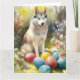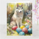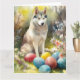 Siberian Husky Dog with Easter Eggs Holiday Card