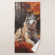 Siberian Husky in Autumn Leaves Fall Inspire Bath Towel Set