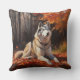 Siberian Husky in Autumn Leaves Fall Inspire Cushion