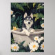 Siberian Husky In Bathtub Poster, Funny Dog Poster