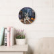 Wall Clock, 25.4 cm Round Black Wooden Frame