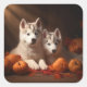 Siberian Husky Puppy Autumn Delight Pumpkin Square Sticker