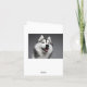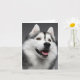 This fun canine note card features a happy black, white and grey Siberian Husky dog highlighted against a dark grey background.