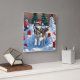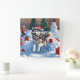 Siberian Husky Running in Snow with Christmas Hat Square Wall Clock