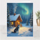 Siberian Husky Snowy Cabin Christmas Painting Card