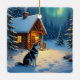A breathtaking winter scene featuring a Siberian Husky by a cozy snowy cabin under the northern lights. This elegant Christmas painting brings serenity and wonder to any space.