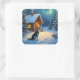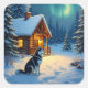 Siberian Husky Snowy Cabin Christmas Painting Square Sticker