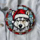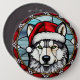 Siberian Husky Stained Glass Christmas 6 Cm Round Badge