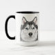 Personalised mug for your Siberian Husky. Customise with your dog’s picture and name; fonts, colours and mug colour can also be changed.