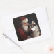 Siberian Husky With Santa Claus Festive Christmas Square Sticker